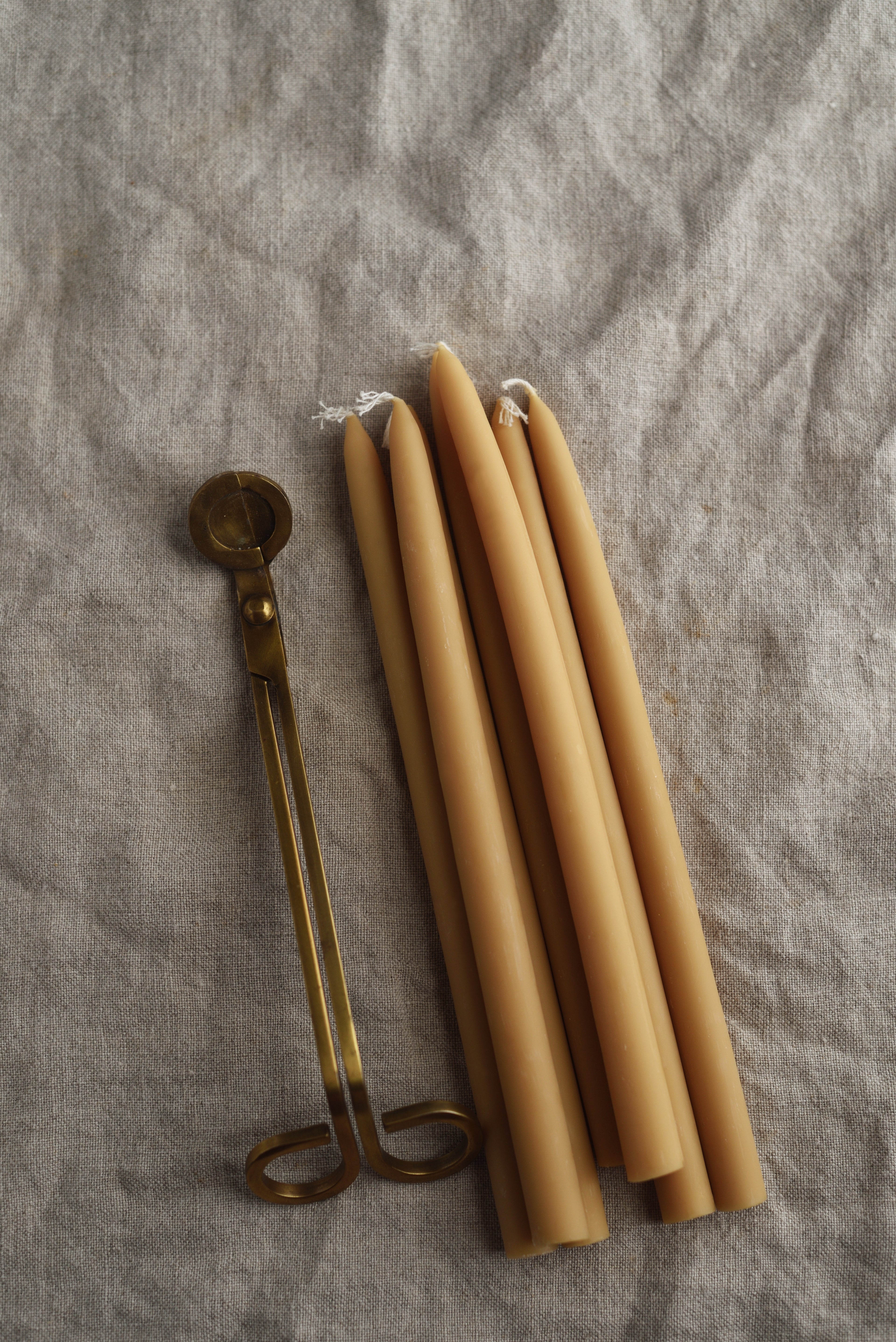Pure beeswax burns slowly and clean. It fills the room with a gentle, natural warmth.